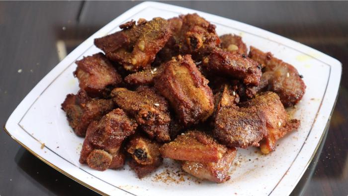 好了,咱們這個幹炸排骨就做好啦,還可以根據自己的口味,往上面撒上燒烤料或者辣椒麵都可以。到這裡炸好的排骨還可以做椒鹽排骨、蒜香排骨都可以。