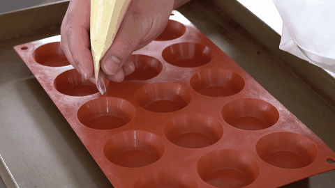 - 加入融化黃油朗姆酒攪拌均勻,擠入模具7分滿