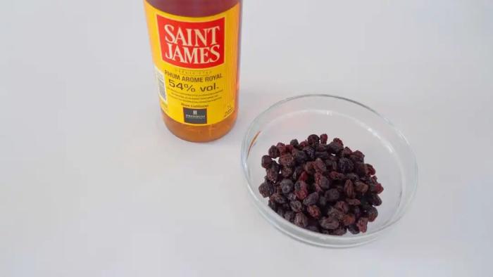 - 提子乾和朗姆酒混合均勻,靜置2小時備用
