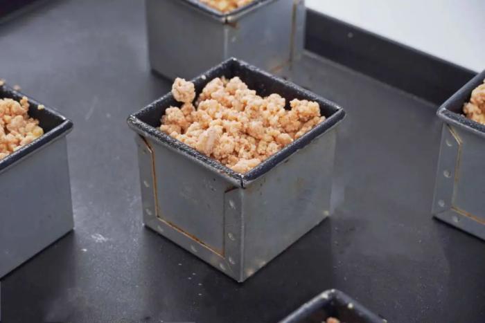- 溫度30°,80%溼度醒發箱,發酵90分鐘,表面噴水放上栗子酥粒